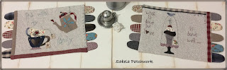 Compré sus patrones en Etsy. Tengo casi todos sus patrones y me encantan dos quilts. "All those simple things " y "Scraps of my life". Y como no hay forma de disponer del tiempo necesario para hacerlos, (al menos hasta que tenga vacaciones...), he usado los dibujos de tres de los bloques para hacer trabajos más pequeños